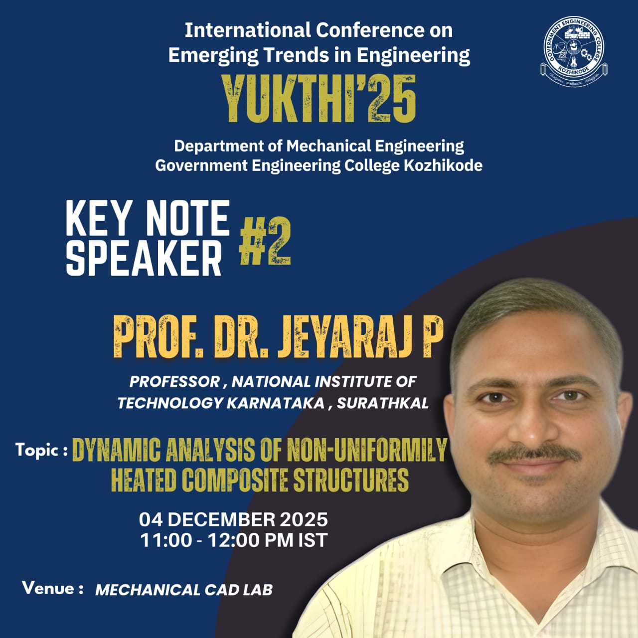 URJA-2025 is a dedicated edition under the broader YUKTHI conference series, focusing specifically on sustainable infrastructure development.YUKTHI 2025 serves as a platform for academicians, researchers, and industry professionals to share cutting-edge developments and sustainable practices in infrastructure. The conference promotes green technologies to address engineering and societal challenges in mechanical engineering domain. Government Engineering College Kozhikode has successfully conducted the subsequent editions of the International conference on emerging trends in engineering, since the first edition of the International conference on Emerging Trends in Engineering Yukthi – 2021. Yukthi 2025 is an attempt to further explore the avenues in technologies by conducting events such as paper presentations, panel discussions, webinars etc. with the active participation of researchers across the globe. Yukthi 2025 provides a venue for the confluence of the latest ideas, thoughts and innovations of talented minds all over the world. The International Conference will be conducted from 3rd,4th and 5th, Dec 2025 in hybrid mode, using both online and in-person modes. Prospective authors are encouraged to contribute to the conference through the submission of their research papers in the original. The accepted research papers after review will be published in conference proceedings with an ISBN. Selected papers will be considered for publication in the Journal of Environmental Nanotechnology (Scopus-indexed) ..